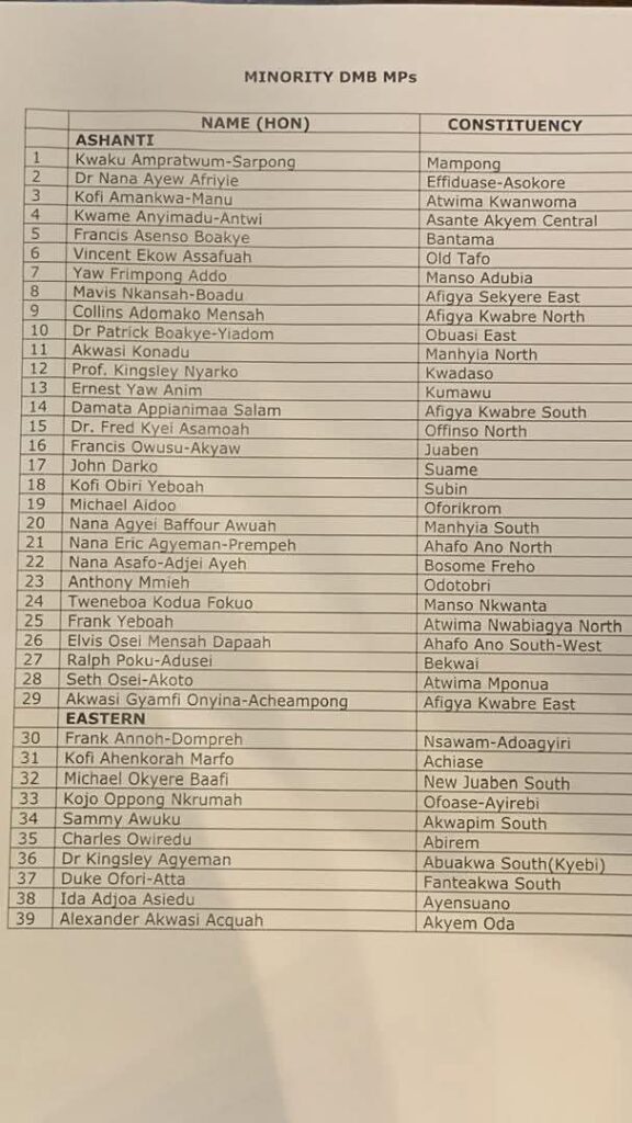 Among those named were Frank Annoh-Dompreh (Nsawam-Adoagyiri), Frank Asiedu Bekoe (Suhum), John Ntim Fordjour (Assin South), and Ekow Vincent Assafuah (Tafo).