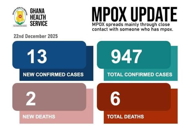 The Ghana Health Service (GHS) has announced the confirmation of 13 new Mpox cases, bringing the country’s total confirmed infections to 947. In an update released on Monday, December 29,…