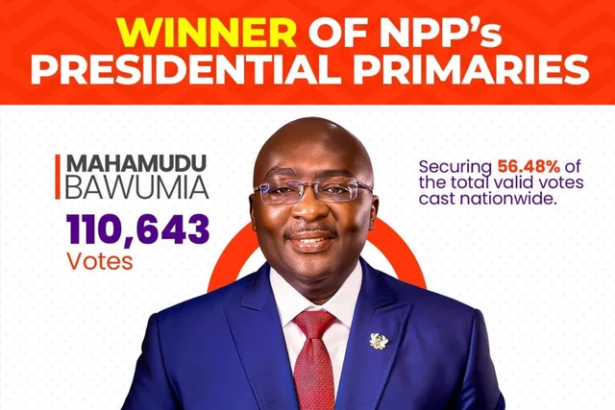 H.E. Dr. Mahamudu Bawumia has been declared the winner of the New Patriotic Party’s (NPP) presidential primaries after securing 56.48 percent of the total valid votes cast across the country.…
