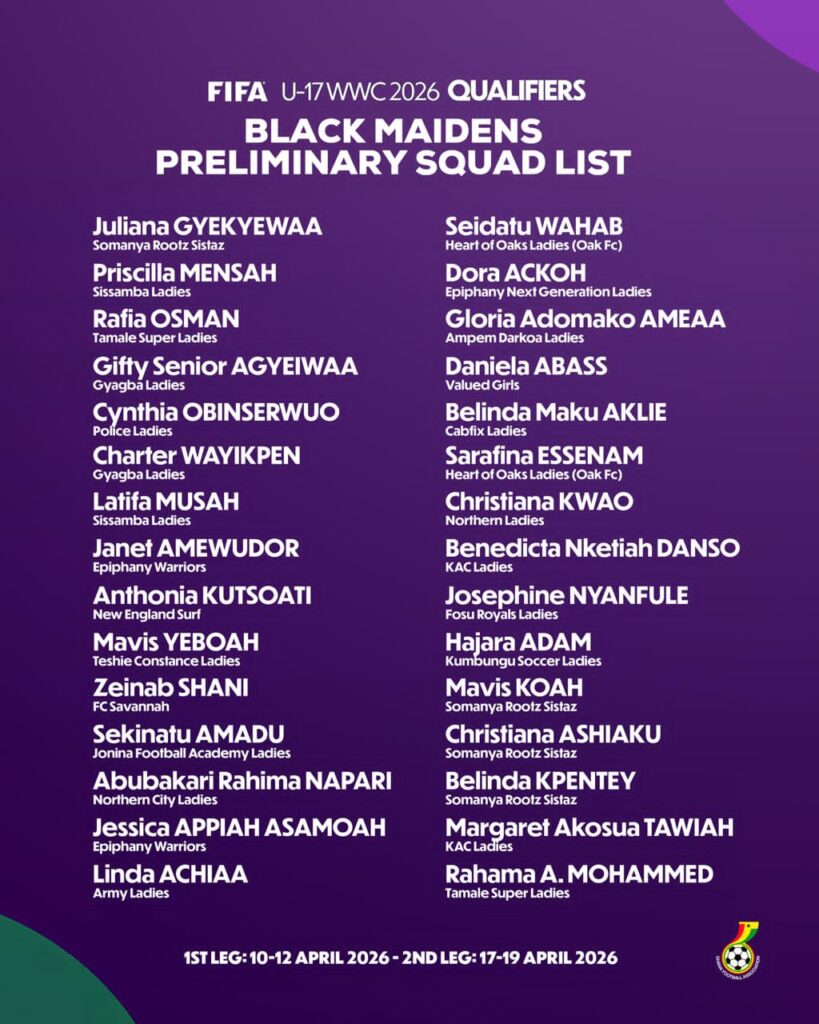 Head Coach of the Ghana U-17 women’s national football team, Joe Nana Adarkwa, has announced a 30-player preliminary squad as the team begins preparations for the FIFA U-17 Women’s World Cup Qualifiers.