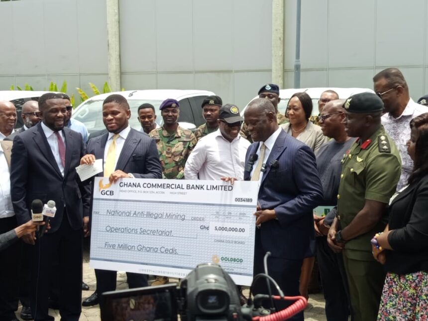 The Ghana Gold Board (GoldBod) has stepped up the government’s battle against illegal mining, popularly known as “galamsey”, by handing over five Toyota Hilux pickup vehicles and GHS5 million to the National Anti-Illegal Mining Operations Secretariat (NAIMOS).