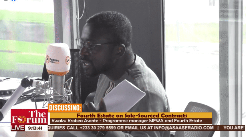The Fourth Estate programme manager noted that the Minister claimed only 44% of the projects were sole-sourced, a figure Krobea Asante described as a fabrication.