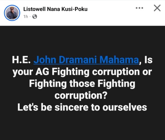 Is your Attorney General fighting corruption, or fighting those fighting corruption, he asked, directing the challenge squarely at Mahama and forcing an uncomfortable national pause.