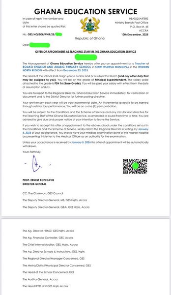 Fresh evidence has emerged over an alleged “secret recruitment” by the Ghana Education Service (GES), as some appointment letters have now surfaced, reinforcing claims by unemployed trained teachers that recruitment is quietly being carried out for selected individuals, many of whom they suspect may have paid for their slots.